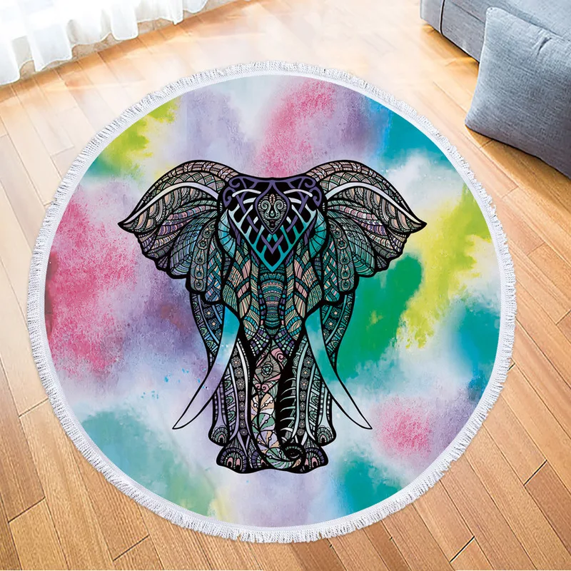 Kaufen Billig Ariel Sarah Elefanten Runde Strand Handtuch Mode Strand Handtuch mit Quasten Mikrofaser Picknick Decke Matte Tapisserie Preise Online