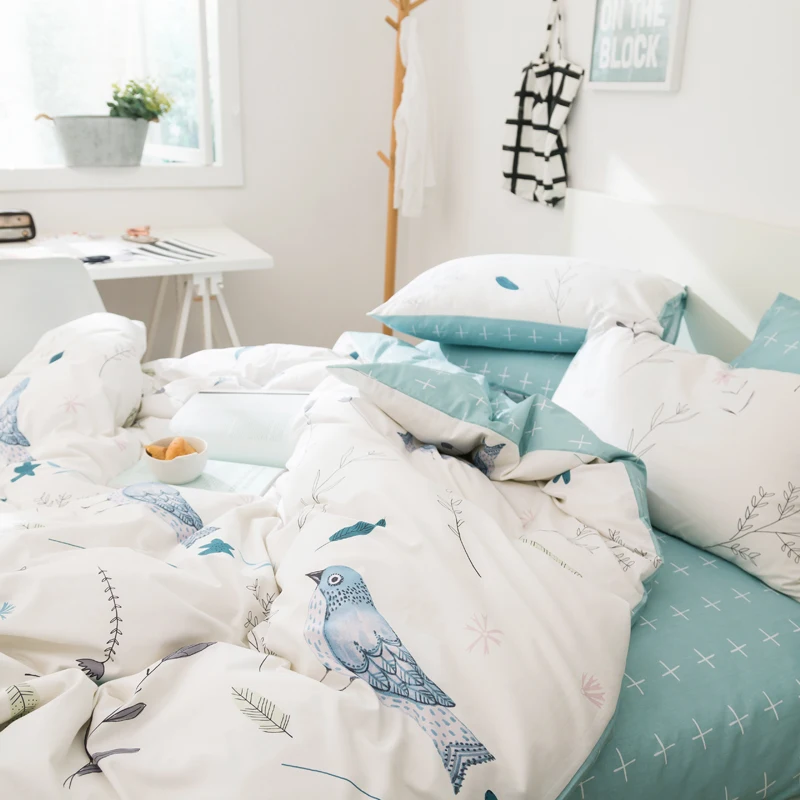 Billige Kaufen PAPA MIMA Pastoralen stil Vogel druck könig königin größe 100% baumwolle bettwäsche sets 3 4 stücke bettbezug set bettlaken kissen sham Preise Online