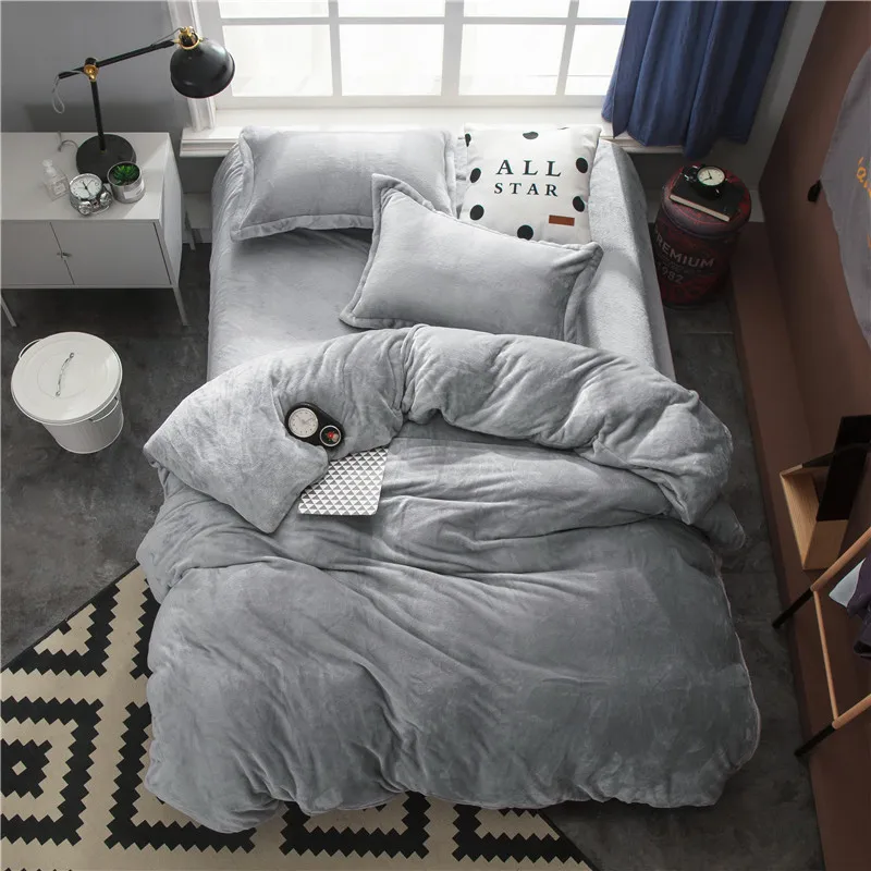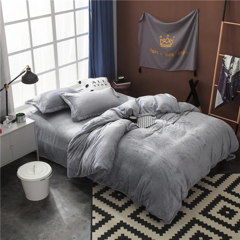 . Günstige Kaufen Twin Voll Königin König größe Bettwäsche Set Grau Fleece Warme bettlaken Ausgestattet blatt Bettdecke abdeckung parrure de lit ropa juego de cama Preise Online.