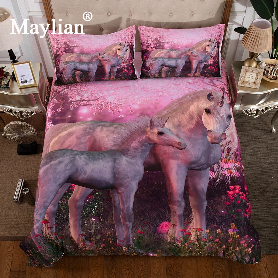 Billige Kaufen Einhorn Bettwäsche Set Cartoon Drucken für Kinder Bettbezug Mit Kissenbezüge Mädchen Bett Set Floral Home Textilien 3 stücke be1104 Preise Online.