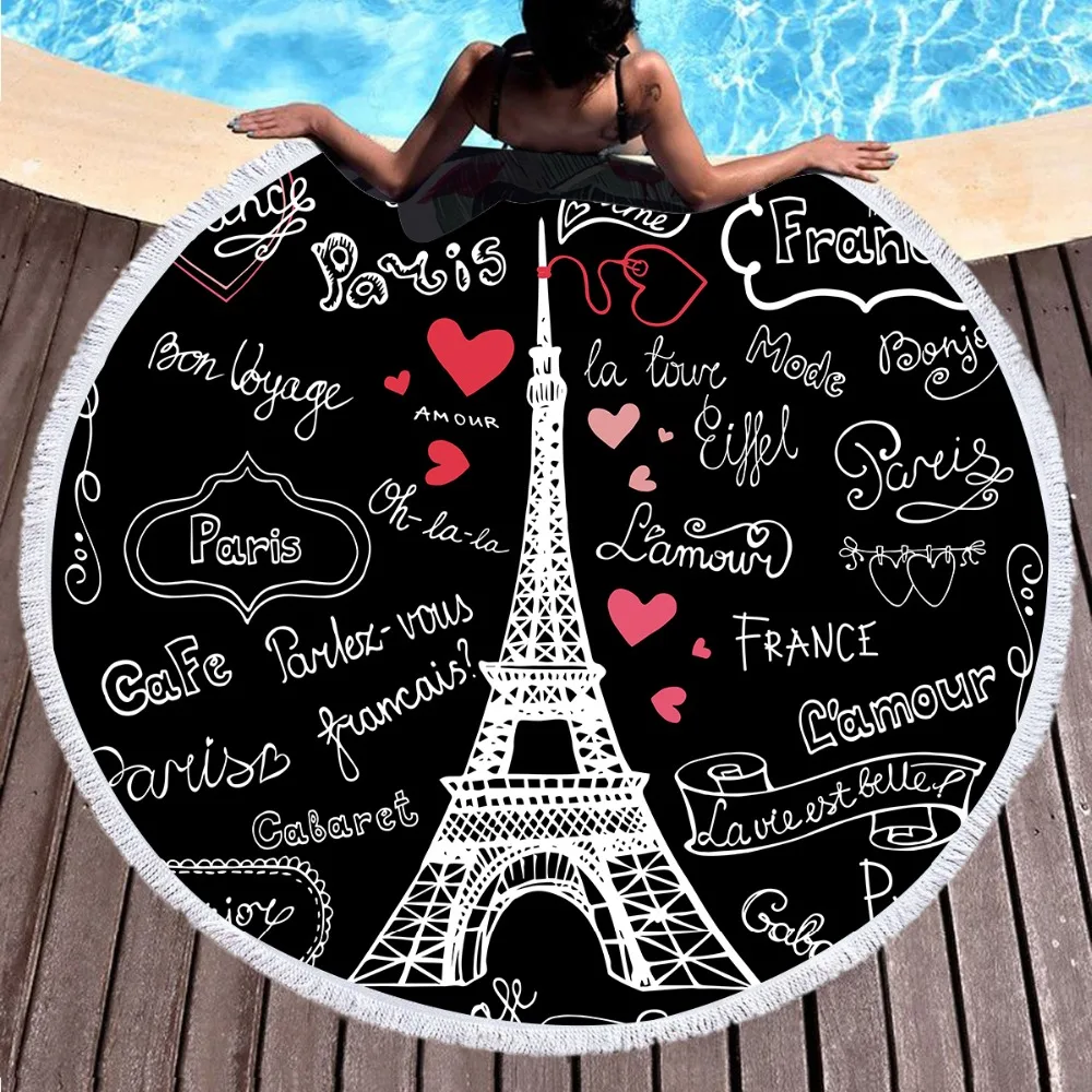Kaufen Billig BeddingOutlet Große Runde Strand Handtuch Frau Toalla Mit Quaste Sommer Handtuch Frankreich Turm Gedruckt Mikrofaser Decke Yoga Matte Preise Online