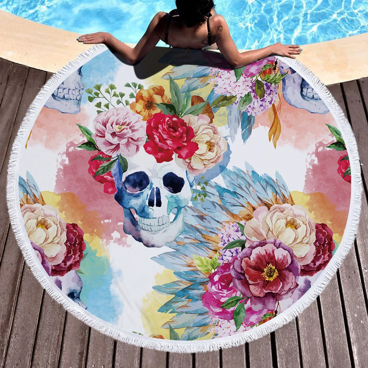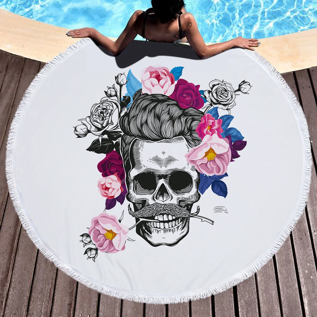 Billige Kaufen Gedruckt Blume Schädel Runde Strand Handtuch Mikrofaser Durchmesser 150 cm Große Übergroße Badetücher Für Erwachsene Starke Frottee Preise Online.