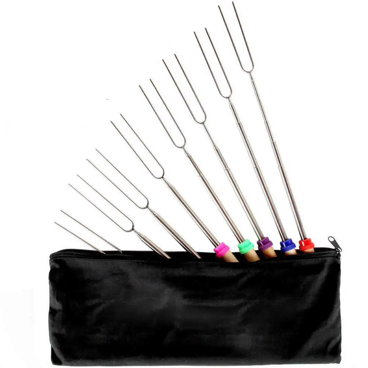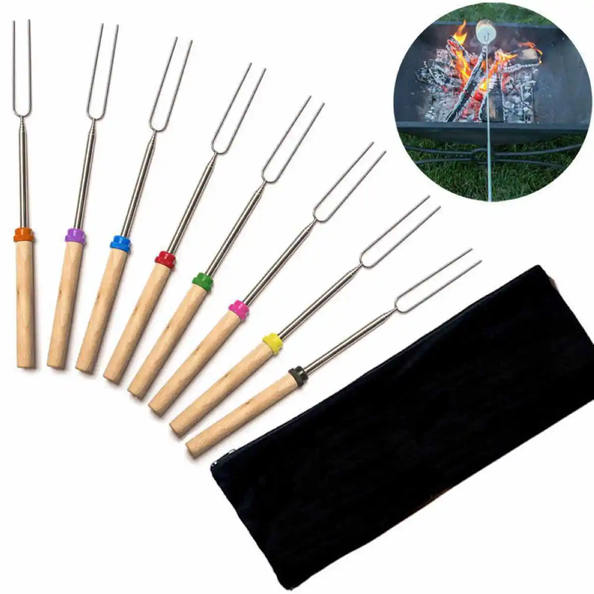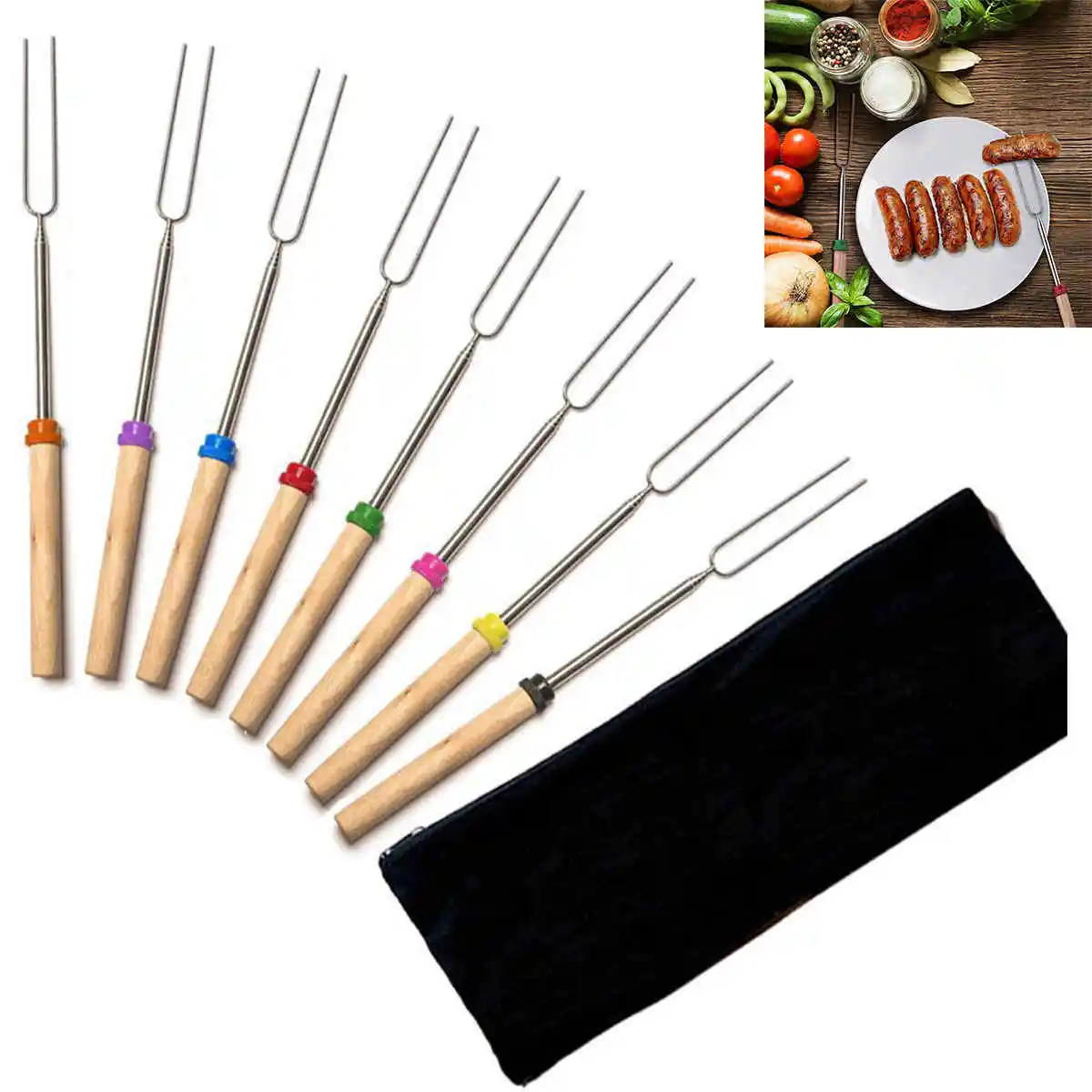 Günstige Kaufen JX LCLYL 8 Pcs Teleskop BBQ Spieße Gabeln Edelstahl Sticks Grill Holzgriff Preise Online.