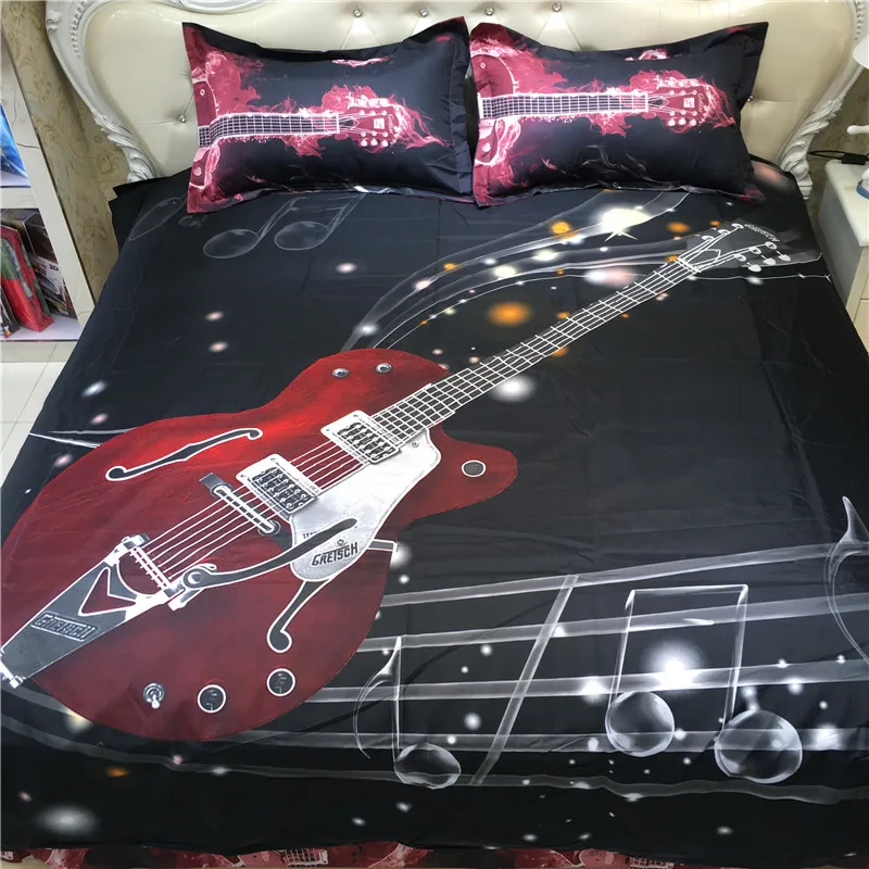. Kaufen Günstig 3D Mode Musik noten bettwäsche set schwarz rot gitarre quilt bettbezug voll queen size doppelbettdecke bettwäsche kissenbezug Preise Online.