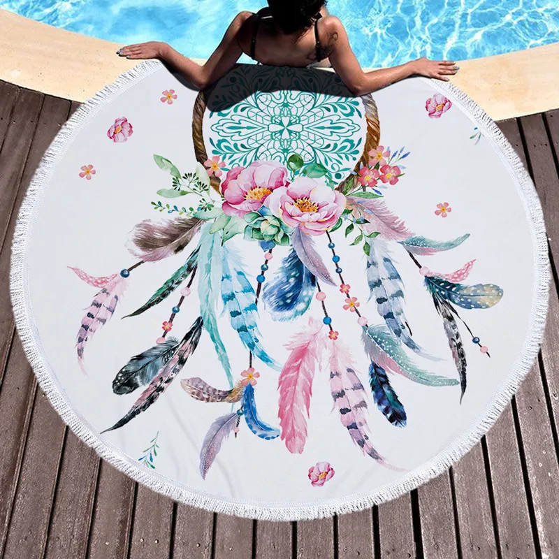 Kaufen Günstig XC USHIO Runde Strand Handtuch Mit Quasten Traum Catcher Gedruckt Mikrofaser 150 cm Für Sommer Schwimmen Picknick Tapisserie Decke Preise Online.