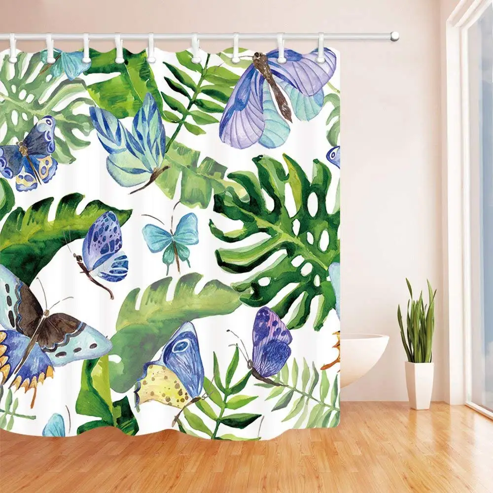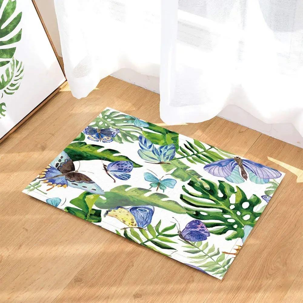 Kaufen Billig Tropical Aquarell Palm Baum Decor Exotische Schmetterling Wilden Banana blätter Dusche Vorhang Set Flanell Nicht Slip Fußmatte Bad Teppiche Preise Online.