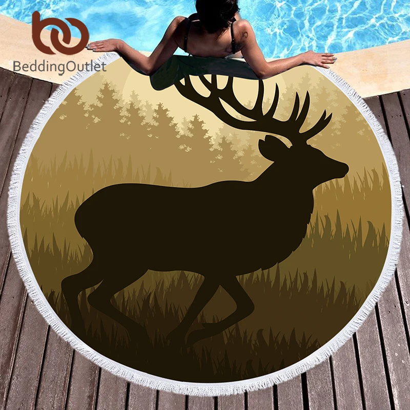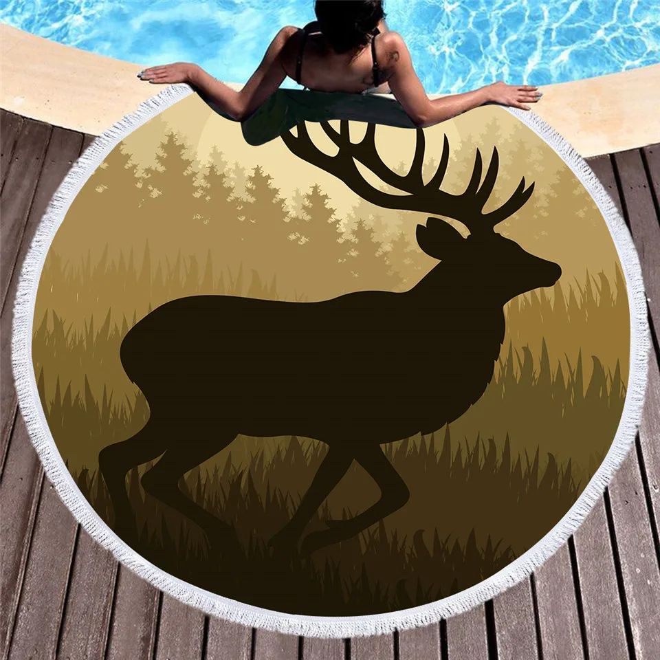 Kaufen Billig BeddingOutlet Wald Deer Gedruckt Große Runde Strand Handtuch Mit Quaste für Erwachsene Kinder Mikrofaser Sommer Handtuch 150 cm Yoga Matte Preise Online.