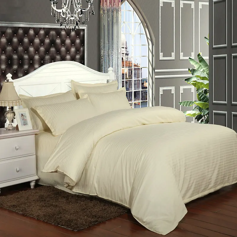 Günstige Kaufen 100% baumwolle bettwäsche set satin streifen Luxus Weiß Hotel bettwäsche Twin Königin Voll King Size bettbezug Ausgestattet blatt Kissenbezug Preise Online.