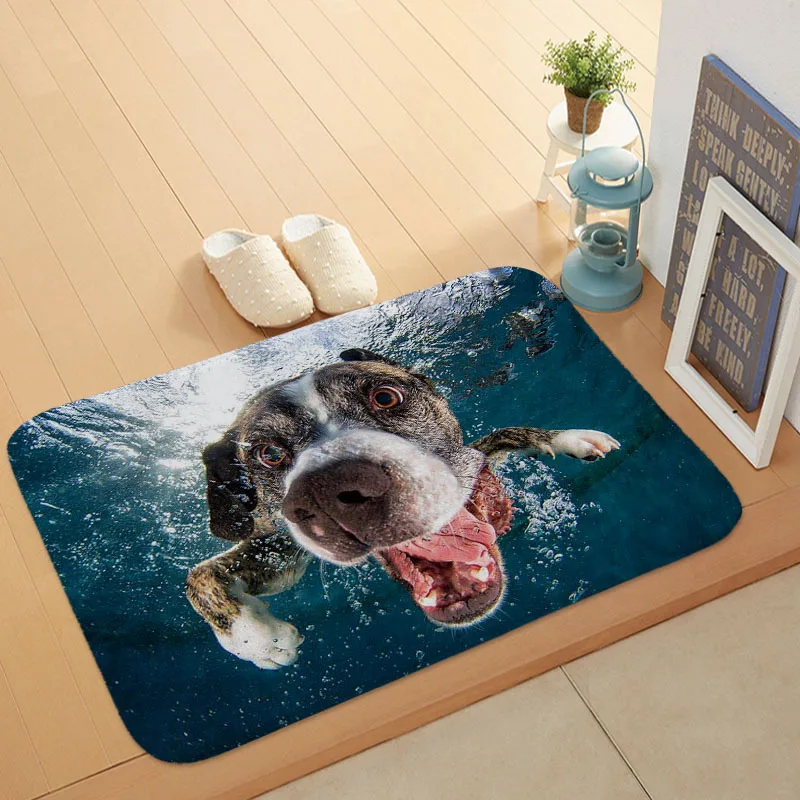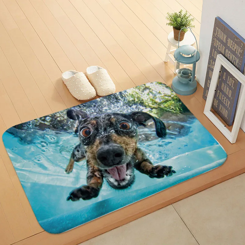 Günstige Kaufen Neue Cartoon Stil Schöne Hund Malerei Hunde Schwimmen Print Teppiche Anti slip Boden Matte Im Freien Teppiche Tier Front Tür matten 40x60 Preise Online