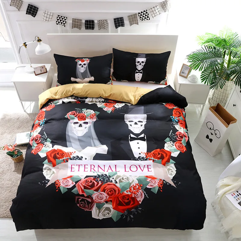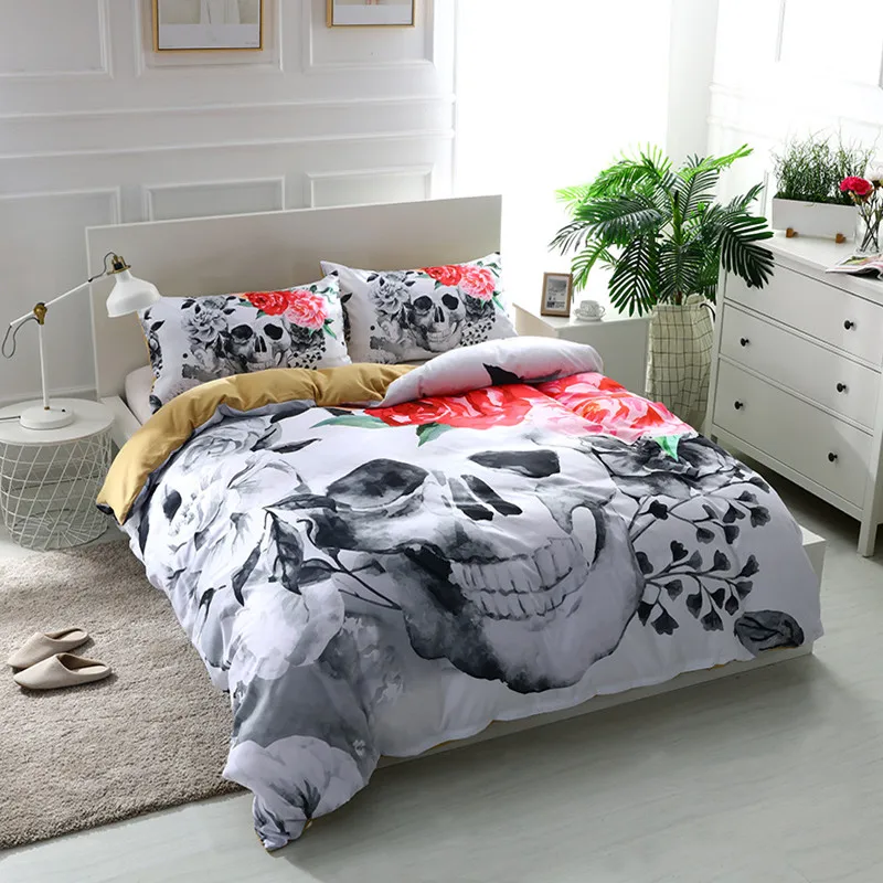 . Kaufen Günstig 3D Blumen Schädel Bettwäsche sets hochzeit Duvet Abdeckung + kissen fall UNS könig größe Zucker Schädel Bett leinen blume bettwäsche 3D bett sets Preise Online.