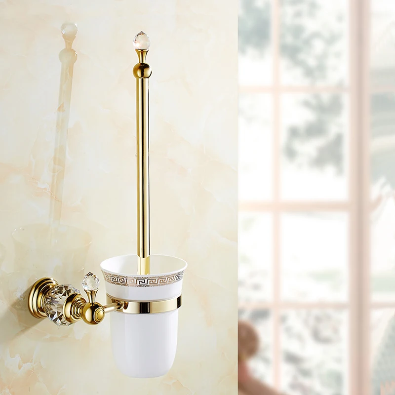 Billige Kaufen Europäischen stil Messing Kristall Wc Pinsel Halter, Gold Überzogene Wc pinsel Badezimmer Produkte Zubehör nützlich HK 44 Preise Online.