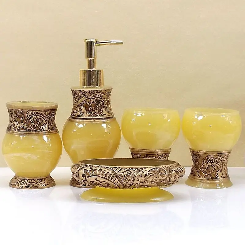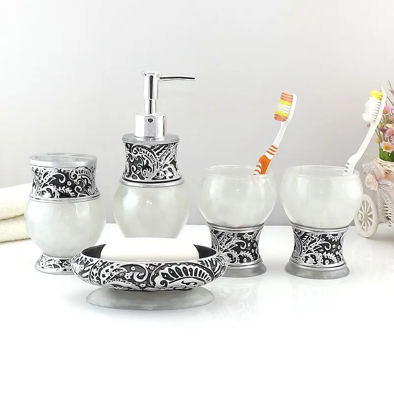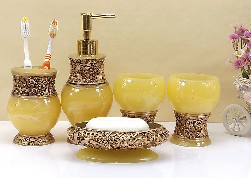 Kaufen Günstig Harz Badezimmer Zubehör Set 5 stücke Zahnbürste Halter Lotion Dispenser Seife geburtstag hochzeit geschenk Badezimmer Zubehör Sets Preise Online