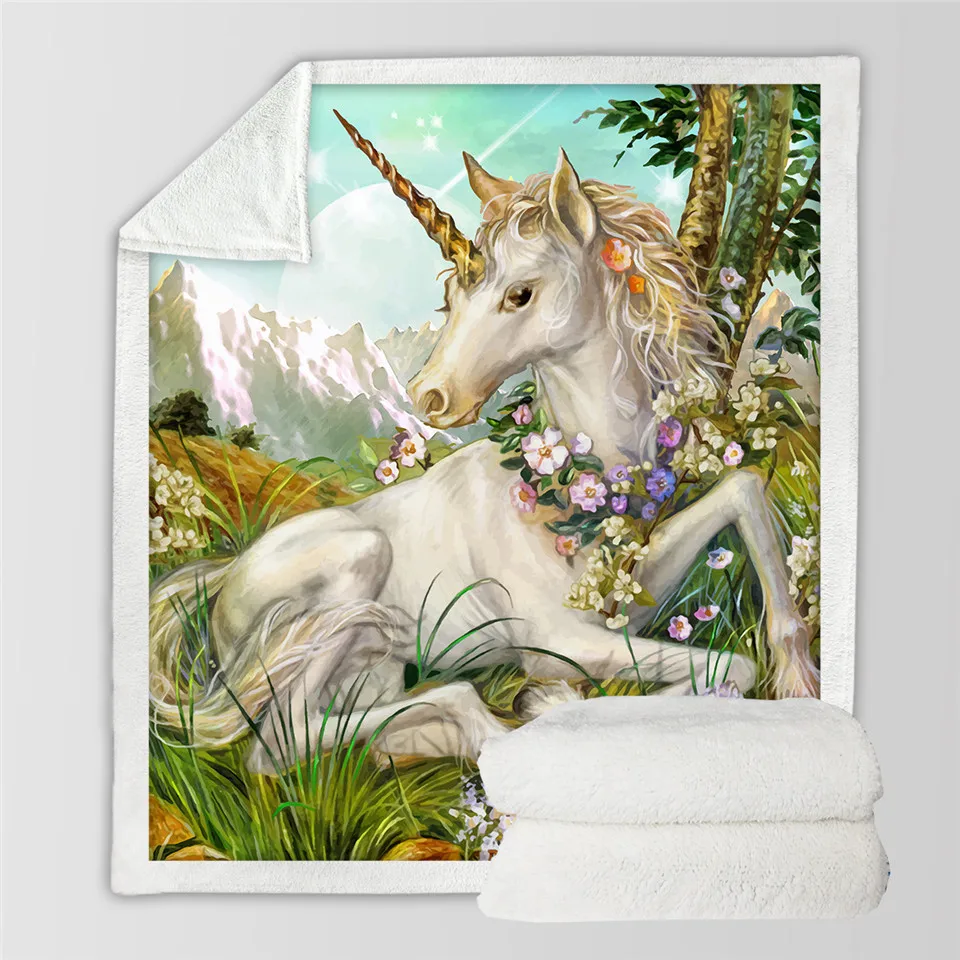 Günstige Kaufen BeddingOutlet 3d Einhorn Decke Aquarell Sherpa Decke auf dem Bett Kinder Mädchen Blume Hause Textilien Traumhafte mantas 150x200 Preise Online