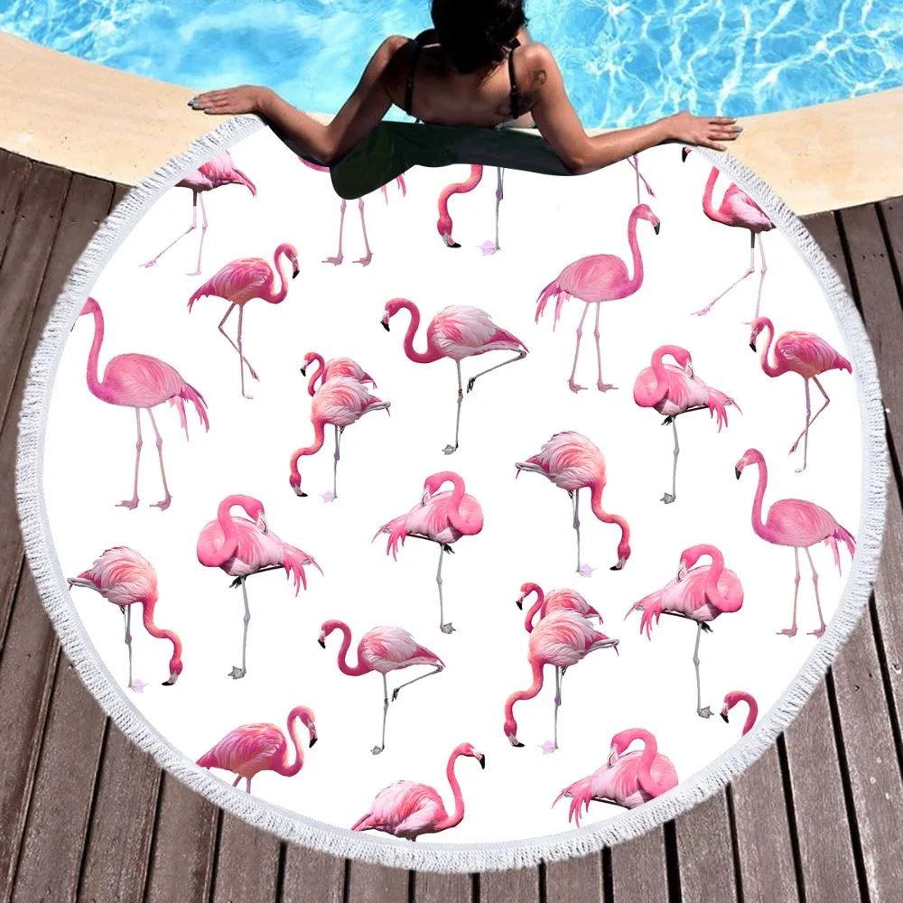 . Günstige Kaufen BeddingOutlet Rosa Flamingos Große Runde Strand Handtuch Mikrofaser Große Handtuch für Erwachsene Kinder Decke Toalla Quaste Picknick Matte Preise Online.