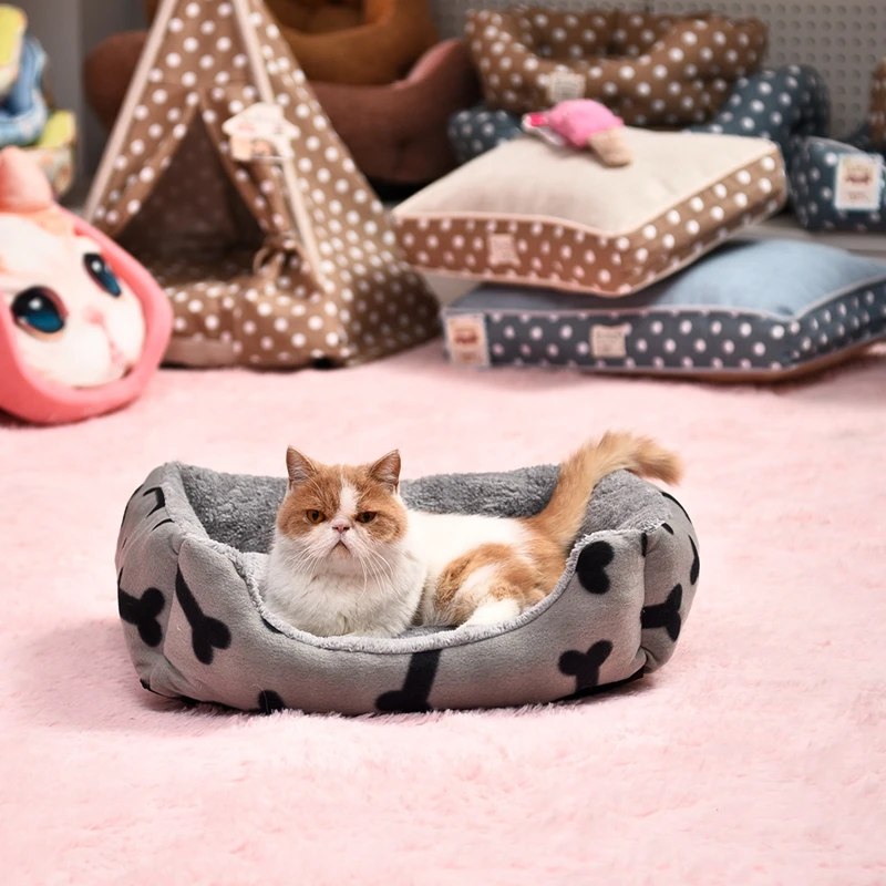 Billige Kaufen Heißer Verkauf Herbst Winter Katze Bett Kennel Weichen Hundeknochen Matten Welpen Hundebett Haustier Haus Cozy Kätzchen Pad Dicke Warme Haustier kissen Preise Online