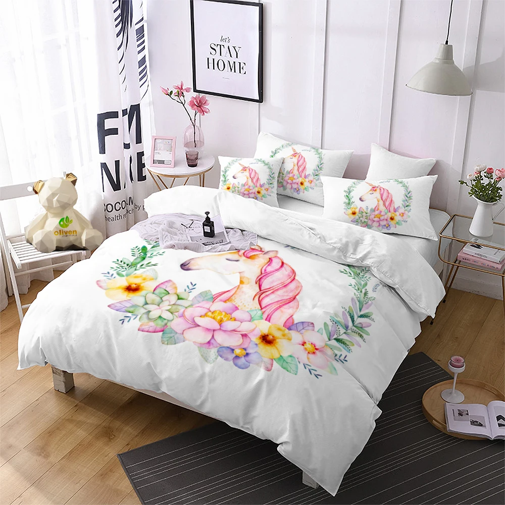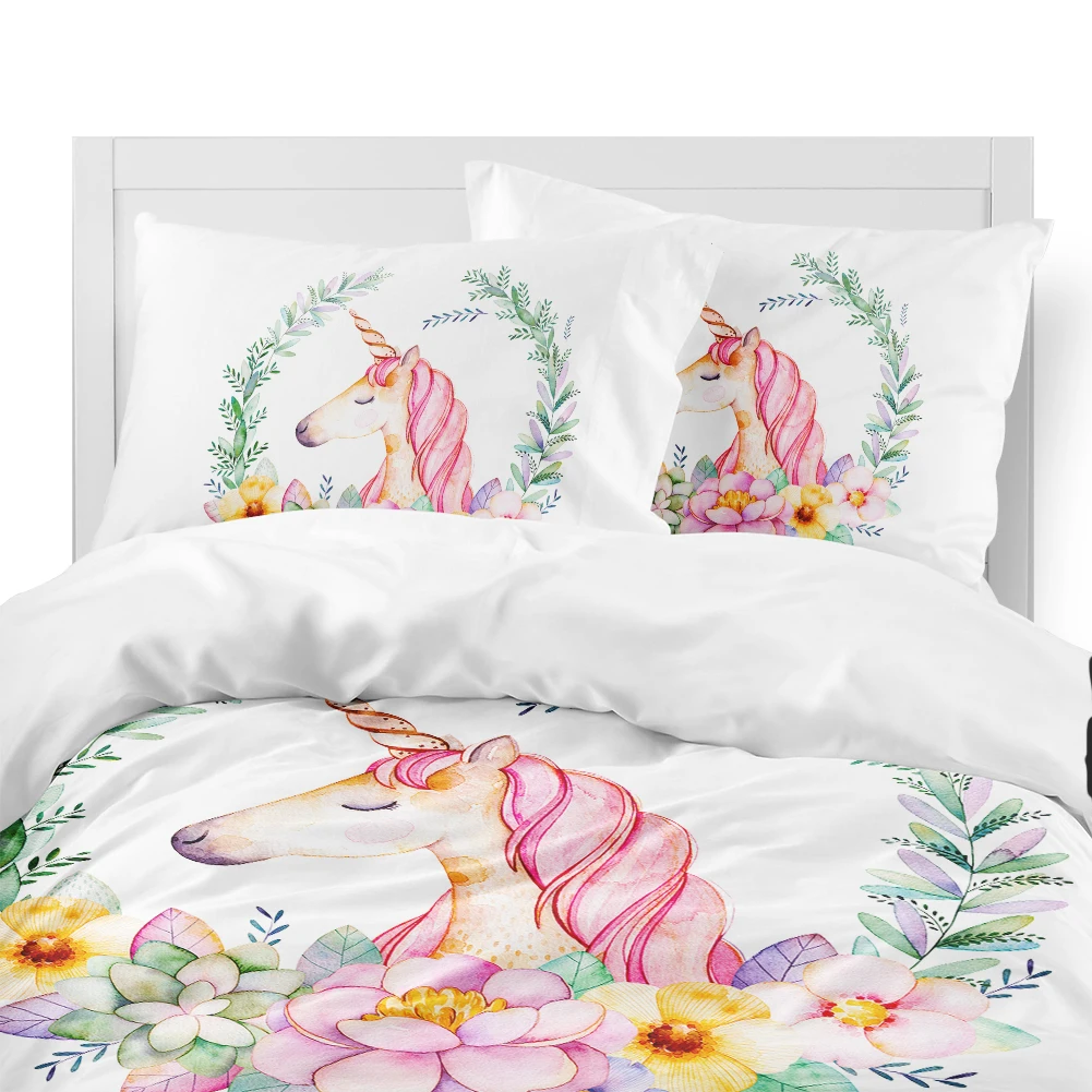 Kaufen Billig Prinzessin Einhorn Bettwäsche Set Mädchen Cartoon Bettbezug set Blumen Kaktus Druck Bett Abdeckung Kissenbezug Weiche Bettwäsche 3 stücke D35 Preise Online