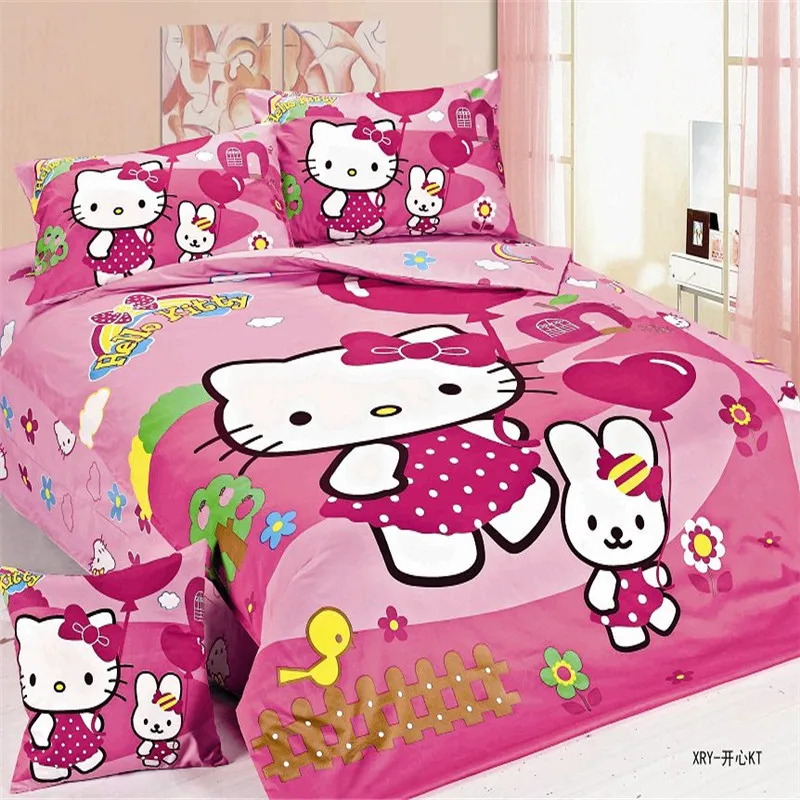 Kaufen Billig Neue Cartoon 3d hallo kitty mädchen bettwäsche set 2 3 stücke twin einzel größe duvet abdeckung bettlaken kissen fall bettwäsche set rosa Preise Online.