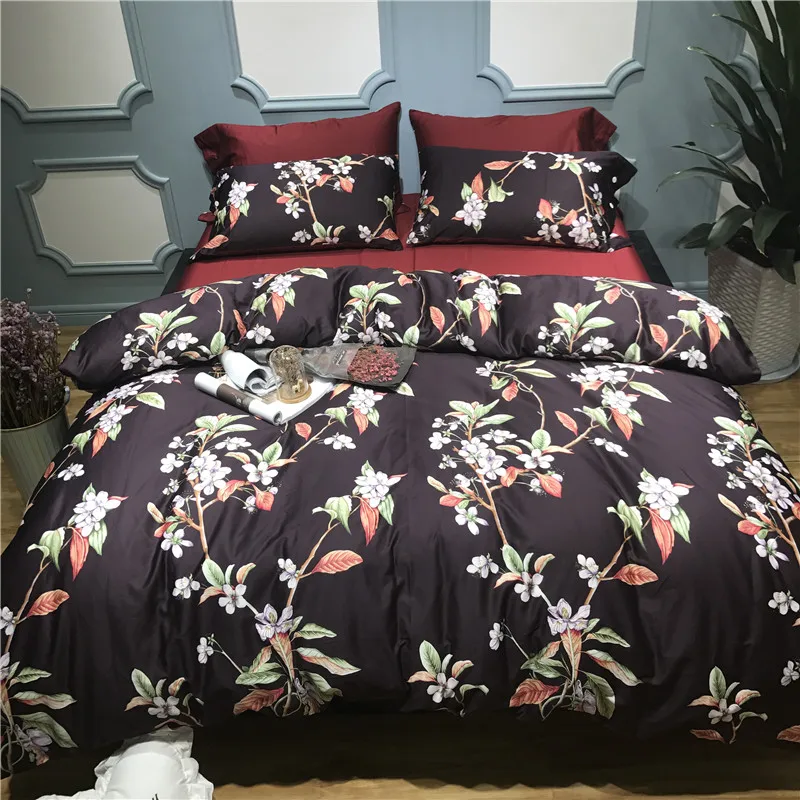 Günstige Kaufen 60 s Ägyptischer Baumwolle Luxus Bettwäsche Sets Weiche Bettwäsche König Königin größe Blatt drucken Duvet Abdeckung Bettlaken Bettwäsche set kissenbezug Preise Online