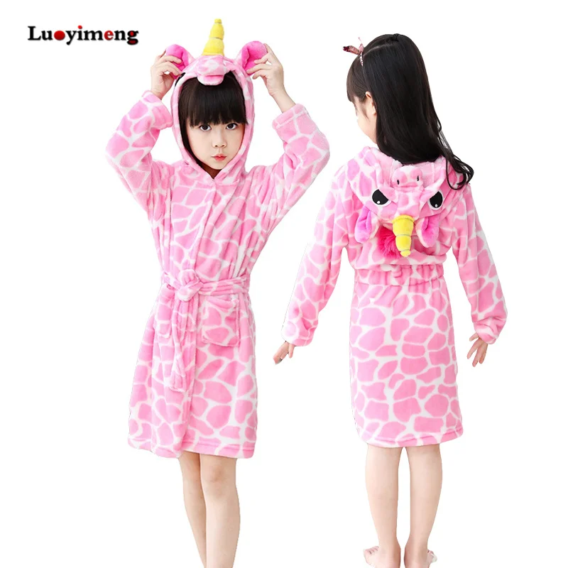 Billige Kaufen Baby Tier Mit Kapuze Kinder Bademantel Winter Flanell Pyjamas Nachtwäsche Mädchen Einhorn Robe Cartoon Handtuch Badeanzüge Jungen Nachthemd Preise Online