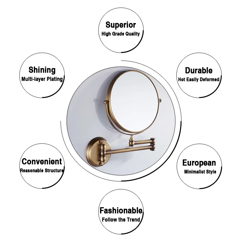 Kaufen Billig Bronze Schwarz Bad Spiegel Regal Wand Montiert 8 zoll Metall Falten Einstellbare Chrom Gold Bad Spiegel 360 Grad Rotation Preise Online.