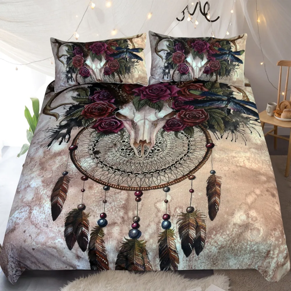Günstige Kaufen Geheimnis Schädel Dreamcatcher durch Sunima MysteryArt Bettwäsche Set Rosen Bettwäsche Floral Bett Abdeckung Set Gothic Vintage Hause Textilien Preise Online