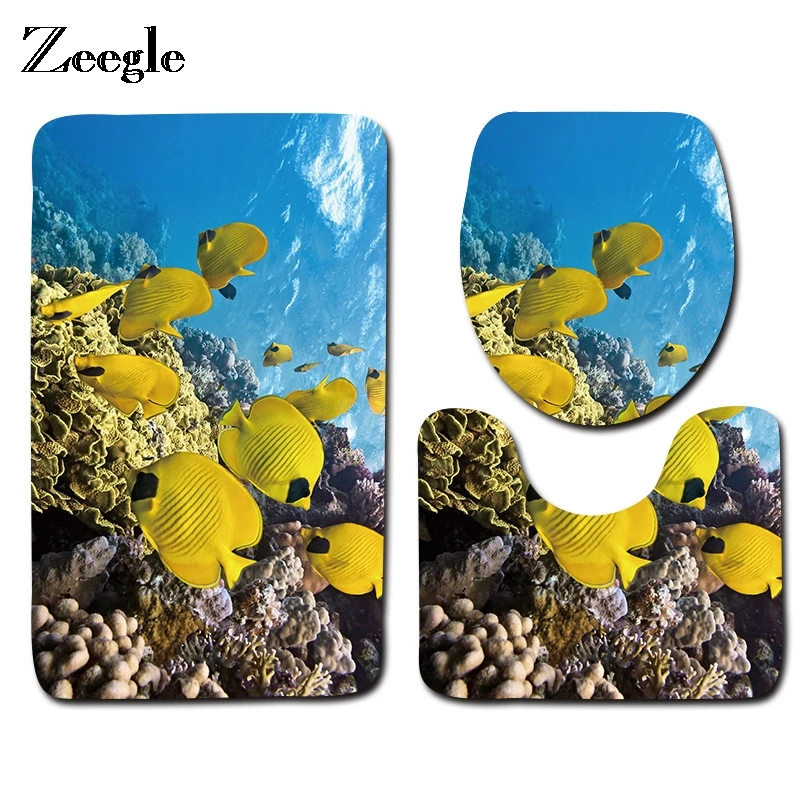 Billige Kaufen Zeegle Ozean Muster Wc Teppich Bad Matte Sets 3 stück Anti slip Mikrofaser Fußmatten Waschbar Bad Teppiche Tür matten Preise Online