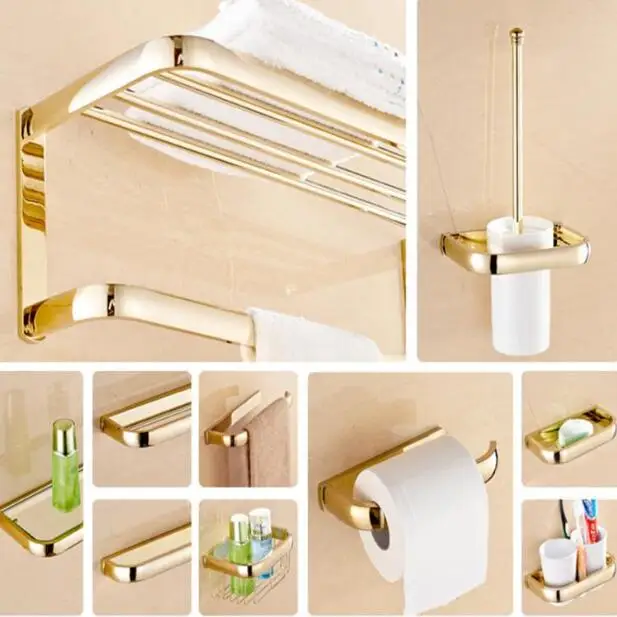 Kaufen Günstig Insgesamt messing gold fertig Badezimmer Zubehör set, kleiderhaken, Papierhalter, Handtuchhalter, Gold bad sets Preise Online.