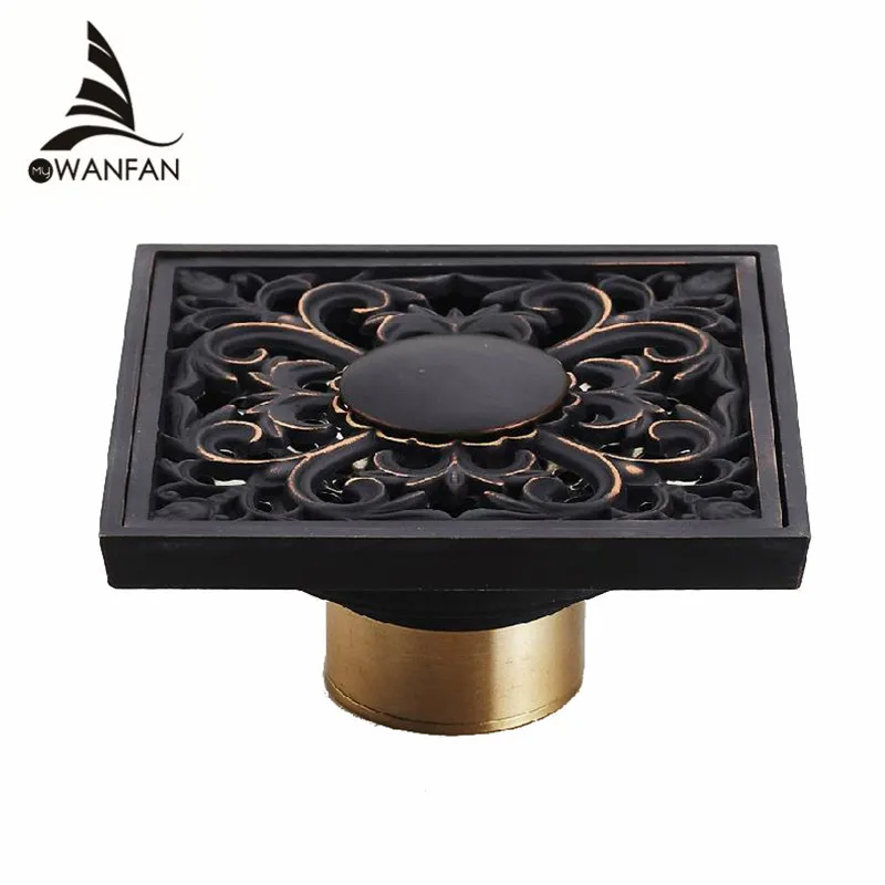 Kaufen Billig Ablauf 10 cm Quadrat Schwarz Messing Duschablauf Sieb Boden Cover Geschnitzte Balkon Badezimmer Bad Zubehör Grate Abfall SY 073R Preise Online